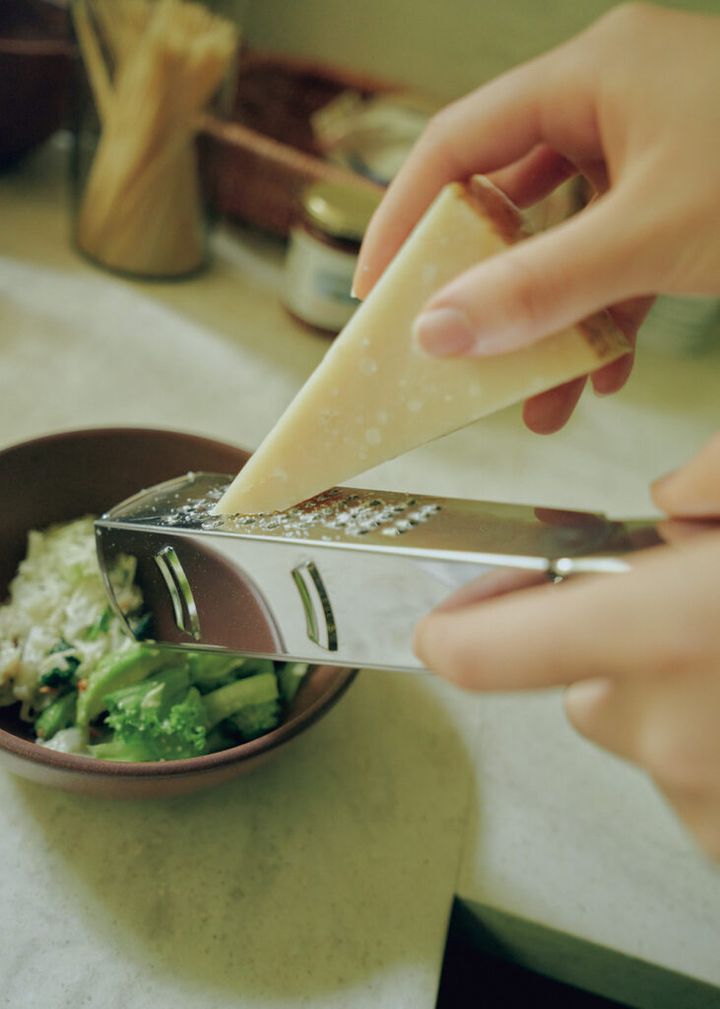 古くから刃物の産地として知られる、イタリア・ピエモンテ州の小さな町ペッテナスコ。ここを生産の拠点とし、日本でも料理好きにはおなじみの〈ビアンキ〉から四面グレーターのスリムサイズが登場。チーズを口溶けよく削れるのはもちろん、果物の皮などを削るための目の細かい面があったり、ちょっとしたスライサーもあったりと用途は様々。取り回しやすい小ささだからさっと使えて、これ一つあれば料理の仕上げのバリエーションがぐっと増える。¥2,750(ザッカワークス 03−3295−8787) その他スタイリスト私物