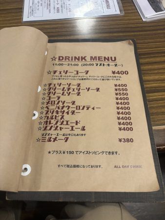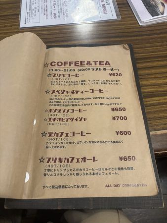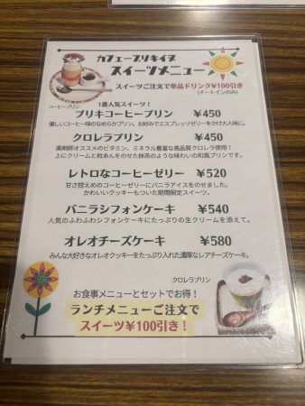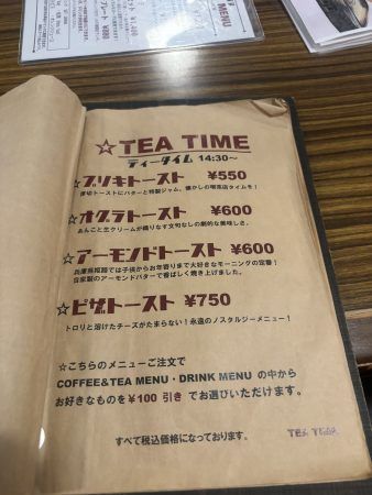 コーヒーとティーメニューとドリンクメニューの中で好きなものを100円引きで頼めます。