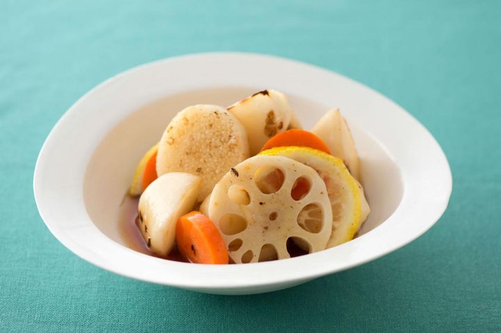 【和風だしマリネ液を使ったレシピ①】焼き根菜のゆずマリネ