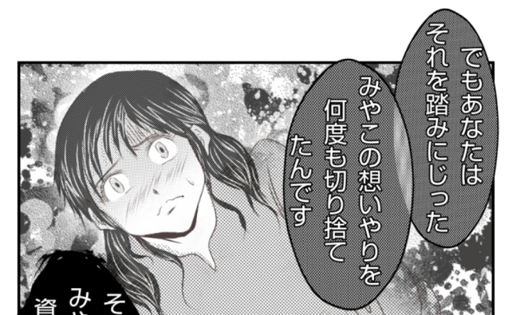 「みやこは今まであなたを想いやっていませんでしたか? あなたに子が生まれたから心からお祝いをして、あなたが悩んでいると言ったら相談にのったのでは? でも、あなたはそれを踏みにじった。みやこの思いやりを何度も切り捨てたんです。そんなあなたが、みやこに何か言う資格なんてない」