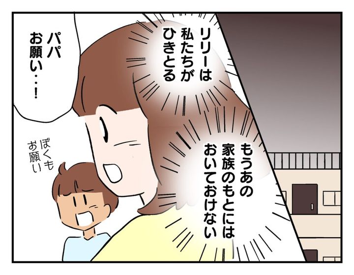 まさお家族はカイの家にもらってもらえば、リリーにいつでも会えると思っているよう。そして、猫のことを考えたからこそ、カイ一家もらって欲しいと考えた、と言うまさおママ。カイの母は怒りを感じながら「家族と相談します」と伝えたのですが、既に心は決まっている様子で…。