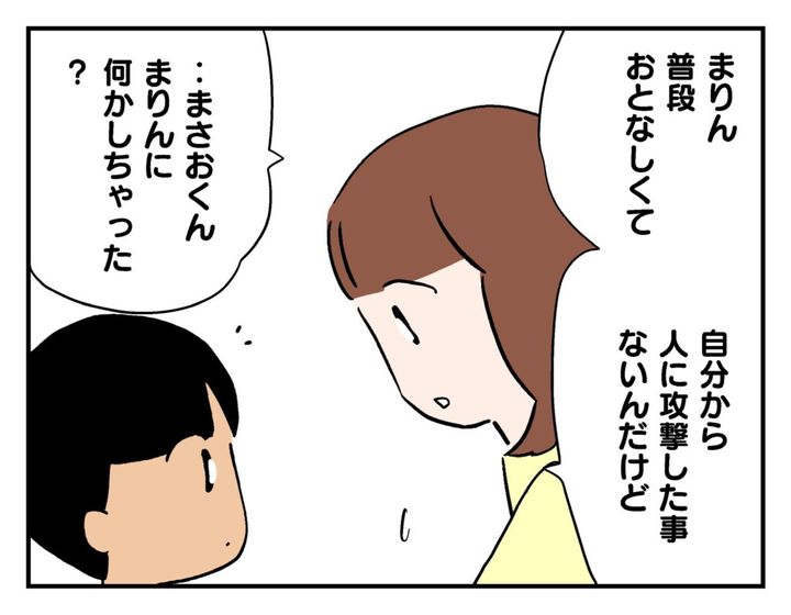 事前に忠告はしたものの、怪我をさせてしまったからには、まさおの母親に謝罪しなければ…と考えるメグ。