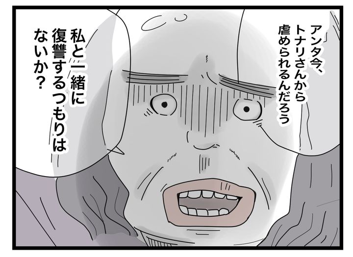 巻き込まれた挙句、ママ友たちからは無視されて、メンタルは崩壊寸前。そんなときに、トナリさんへの復讐をナナメさんから持ちかけられて…、いったい何をするつもりなのでしょうか?