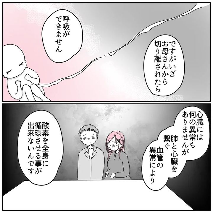 しかし、お母さんから切り離されたら、肺と心臓をつなぐ血管の異常によって酸素を全身に循環させることができなくなる。
