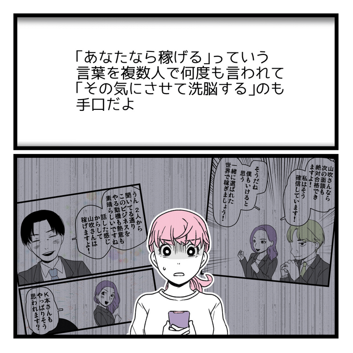 複数の人にその気にさせられるのって、昔、高齢の方に高い布団などを売りつけてた商法に似ているなと思いました。