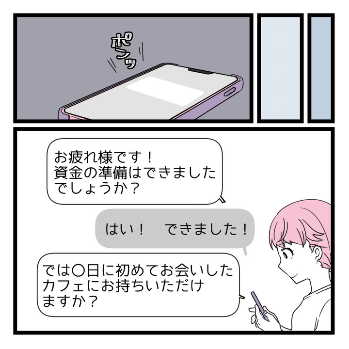 銀行でお金をおろし、家に帰ってI田さんからの連絡を待つと、「振り込みではなく手渡しで」と言われました。