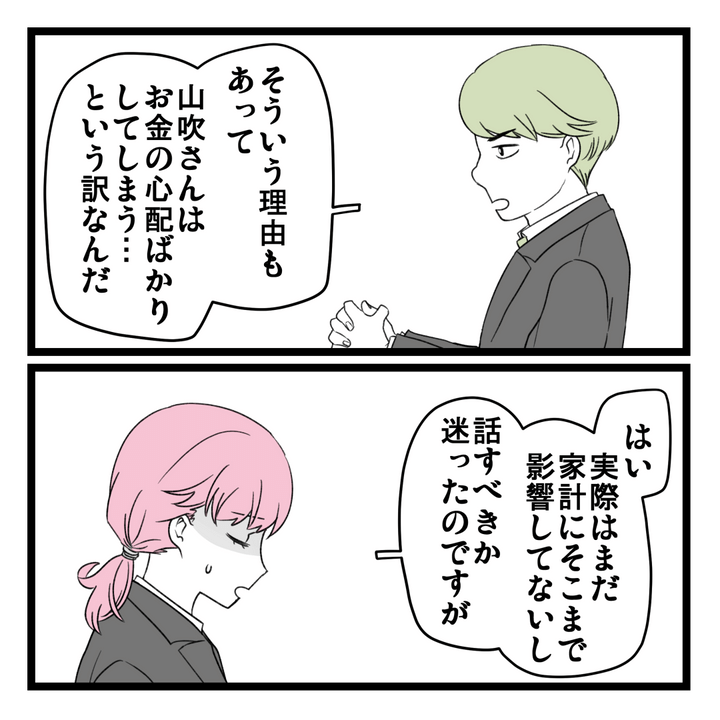 ビジネスへの熱意が足りず、S野から「そのへんの求人に応募して正社員になればいい」と言われてしまった主人公・いろ。I田がフォローしてもS野の意見は変わらなかったため、いろは病弱な母親の話も打ち明けることにして…。
