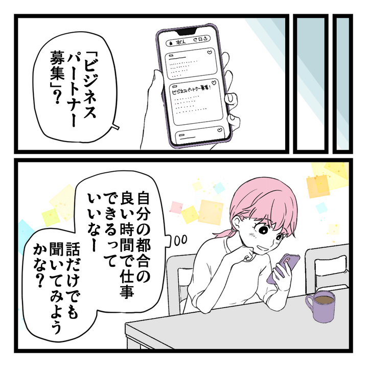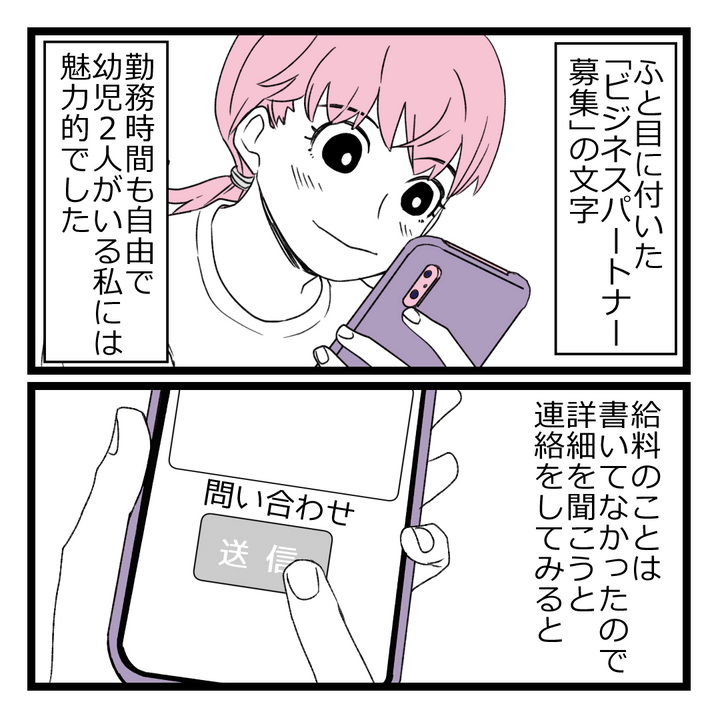 2. 失業中に目にした「ビジネスパートナー募集」の文字 育児中の私にピッタリな仕事かも!?【洗脳されて詐欺ビジネスに200万払う寸前だった話 Vol.1】