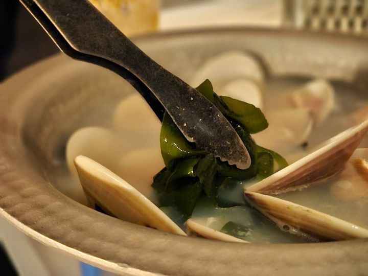 ハマグリの旨みがにじみ出た出汁でいただく生わかめ、ヘルシーでおいしすぎ!