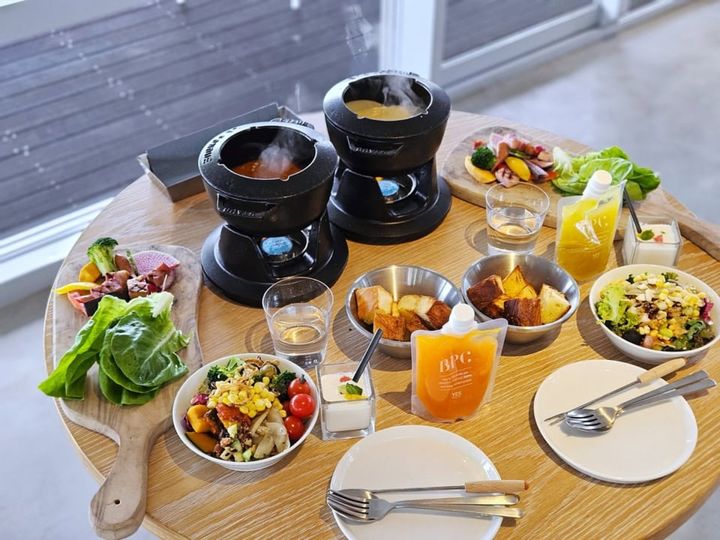 「BPC」のダイニングでは、5種類から選べる “HOT POT”と食べ応えのある肉料理をメインとしたウィンターコースが登場。HOT POOLやサウナでポカポカ整えたカラダに、さらなる活力をチャージ! 今回は「三陸産生わかめと活ハマグリ鍋」をいただいてきました。千葉名物の活ハマグリと風味豊かで食感が絶妙な生わかめをたっぷりと堪能。旨味たっぷりのハマグリの出汁で生わかめをしゃぶしゃぶして、肉厚なハマグリもしっかりいただいた後は、ハマグリの旨みを生かしたクリームスープパスタで〆。