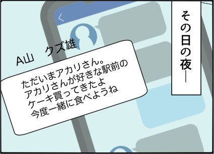 娘の友達のお父さんからストーカー被害に遭い、恐怖したアカリさんの物語。
