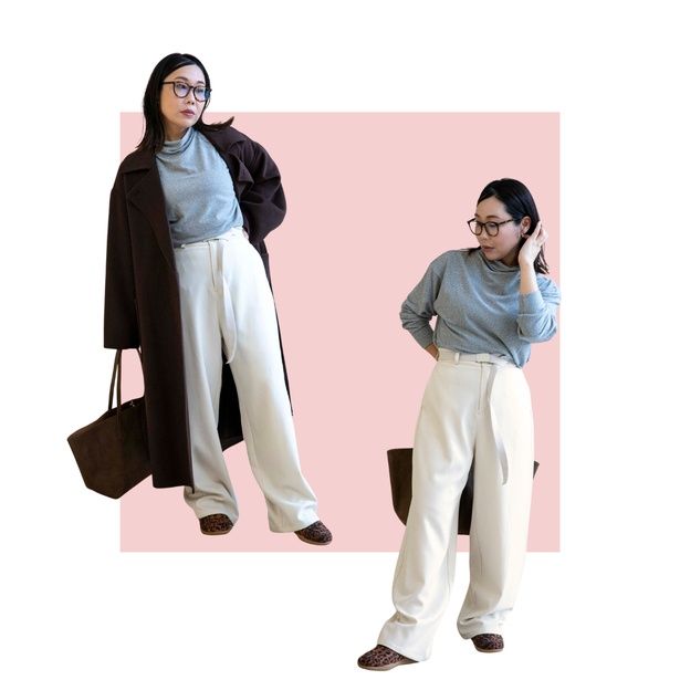 2. 冬こそホワイトパンツ! すっきり見えを叶える大人の着回し術3選