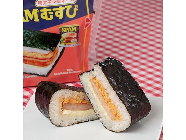 SPAM®と、明太子マヨネーズを一緒にサンドしたおむすびです。