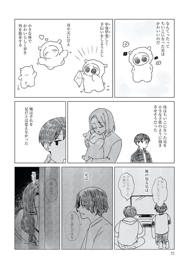 謎の生き物になった兄を、「兄」だと思えない弟。ふと垣間見えた面影に思わず涙が…/人類の半数がちいこになった1⑥