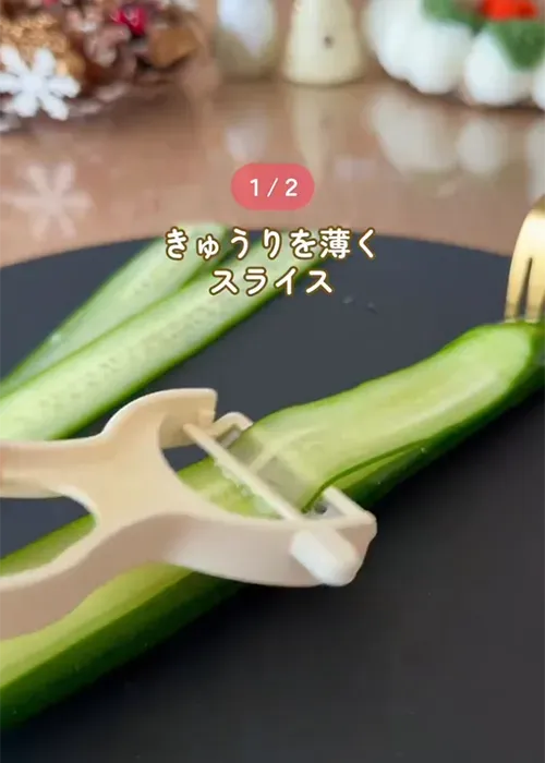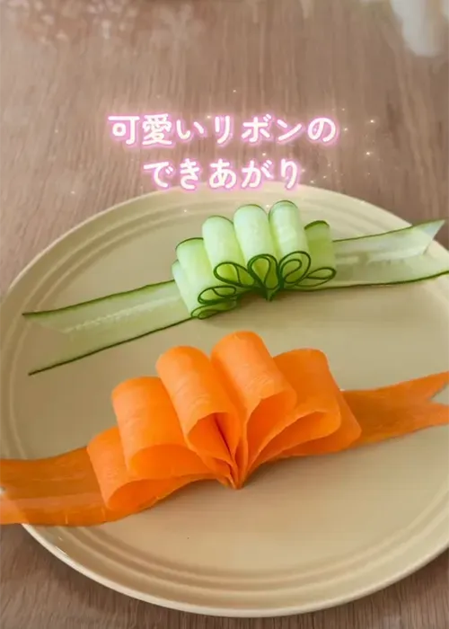 スライスしたキュウリを使っても、同様の手順で『リボンサラダ』を作ることができるそうです。