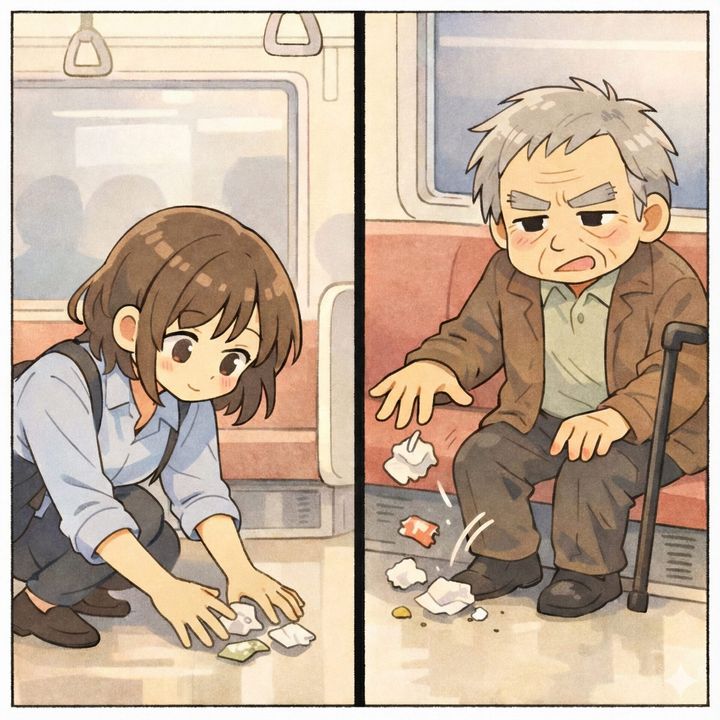 3. 「間違えて落としちゃったんだ」電車内でゴミを捨てる老人の言い訳。しかし、私が正論を言うと言葉を失った