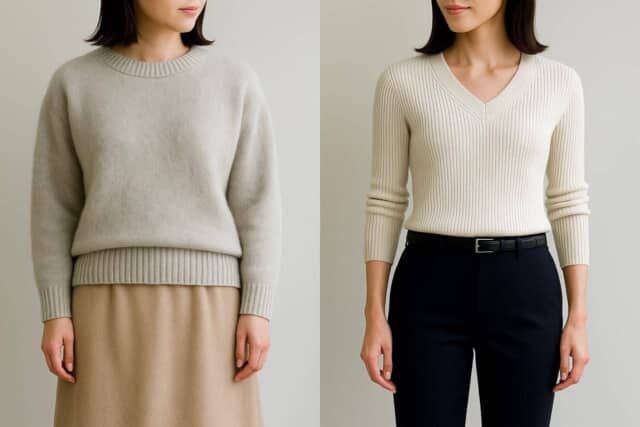 ニットの着用時の見た目印象は、体型より“重心の設定”で変わります。今日のコーデに悩んだら、まずはウエスト位置と縦ラインを意識してみて。驚くほどスッキリ見えるようになるはずです。<text:ミミ 監修:YOMI(パーソナルスタイリスト)> ※本コンテンツの画像は生成AIで作成しています