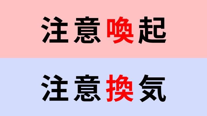 「注意喚起」or「注意換気」正しいのは?