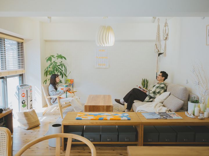 MikazeさんとTakujiさんが住み慣れたエリアで見つけられたのは、リノベ住みの綺麗な賃貸物件。内装を活かしてポップなアートやアイテムを飾ったり、友人を招いてのホームパーティをしたりと暮らしが充実する住まいについてお話を伺っていきます。