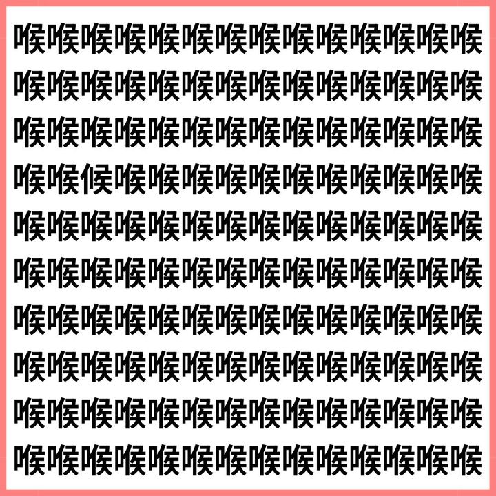 たくさんの「喉」の中に、1文字だけ違う漢字が混ざっています。