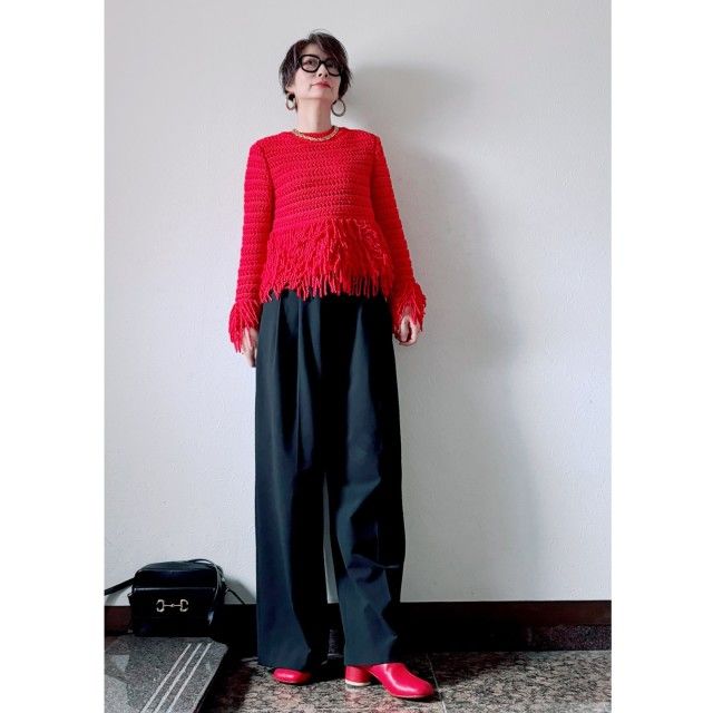 いよいよホリデーシーズンの到来。40代50代におすすめなのが、クリスマスカラー&新春カラーである「赤のニット」です。華やかでハッピーなムードがあり、大人の年末年始コーデにうってつけ。