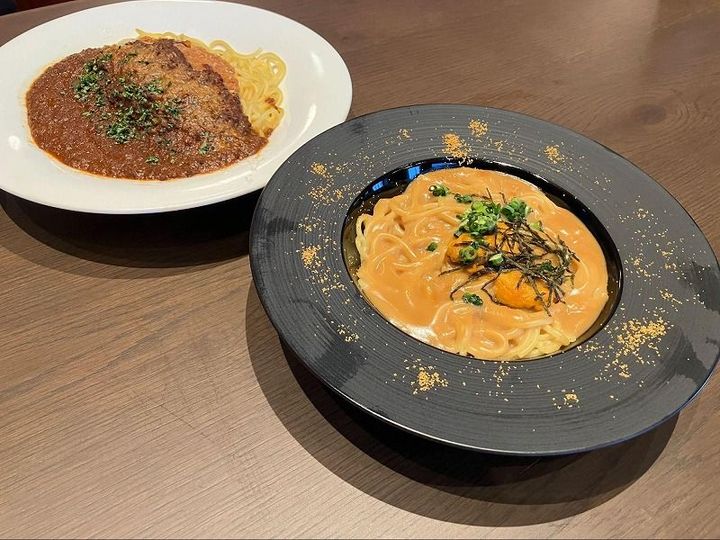 「余市産カラスミと雲丹のクリームパスタ」(4200円)に、「とんかつボロネーゼ」(3200円)。一品で満腹・大満足のボリュームですが…