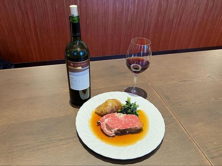 「和牛ローストビーフと丸っとじゃがいものグリル」(7500円)は、お肉が分厚く、かつやわらか。ソースも上品な味わいで、先ほどまで雪が舞うスキー場にいたことを忘れてしまうような、ゆったりした時間を過ごせます。