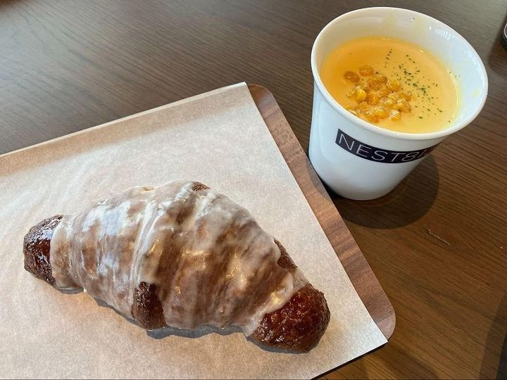 雪がかかったような見た目から惹かれる「羊蹄山クロワッサン」(900円)。スキーでたくさん動いた体に嬉しそうな甘さ