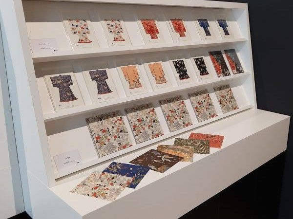 展示室には丸紅の染織コレクションも華やかに展示されていました。染織の柄はミュージアムグッズの意匠にも取り入れられています。