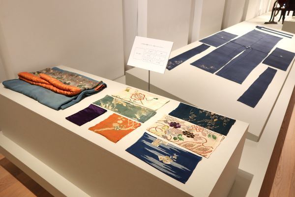 展示会場の入口手前に様々な着物の生地を実際に触ることが出来るハンズオン展示がありました。