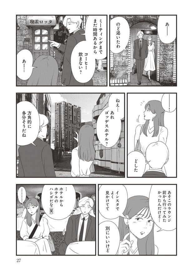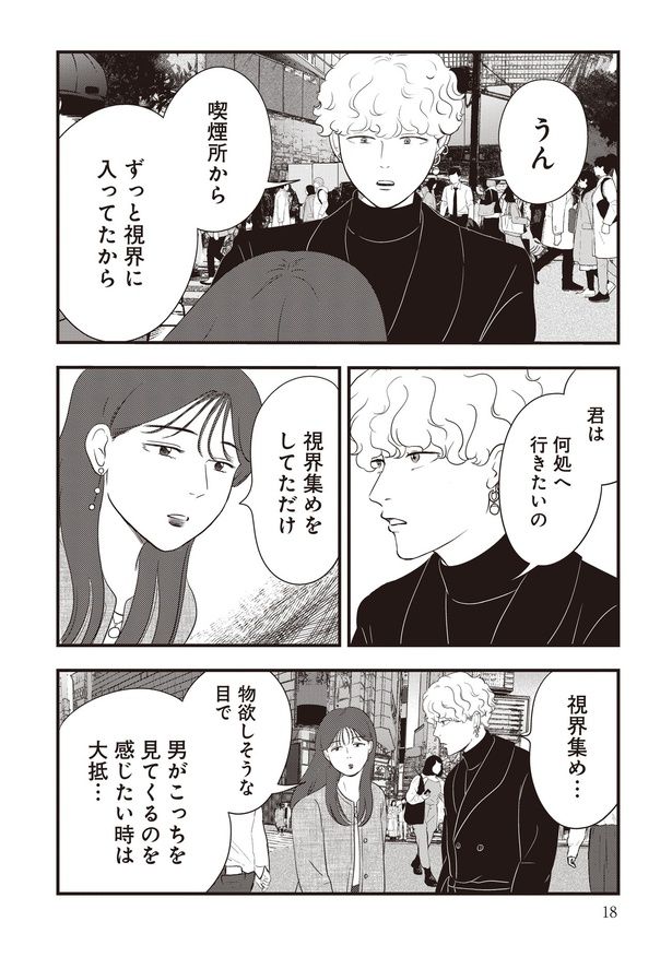 交差点を何度も往復し、“物欲しそうな男の視界集め”をする。ナンパやキャッチを断り続けた先に、ある男と出会う/灰汁女②