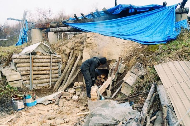 一度入り口を閉じたら、木炭ができ上がるまでは開けることは許されません。