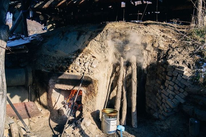 「最初は水分の甘いような匂いがするが、窯の中に火がついてくると、咳き込むような辛い匂いに変わる」と佳輝さんは言います。