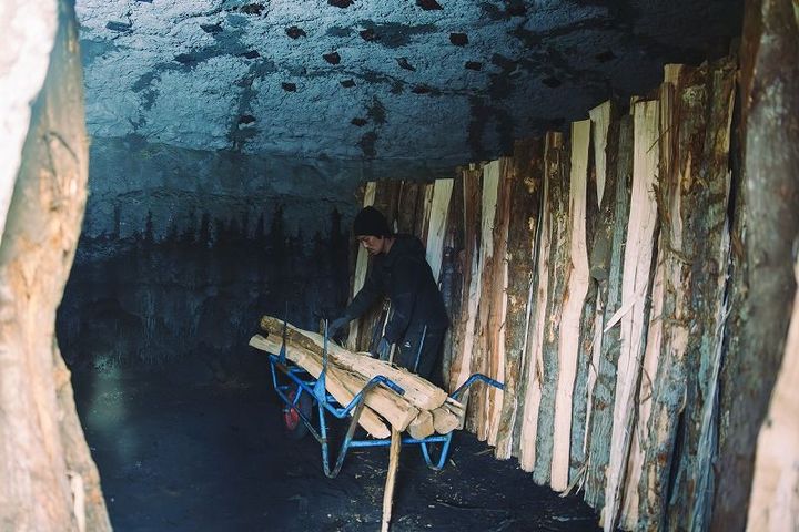 窯に火がつくとその後は煙突口を調整しながら、窯の中の火の温度を管理し、煙が出なくなったら6日間置いて、やっと木炭の完成です。