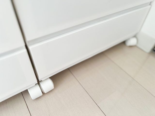 一度置いてしまうと、モノが入った収納ケースは重くて動かしにくいもの。そんなときに役立つのがコロコロ(キャスター)です!