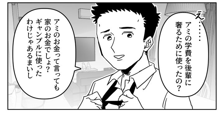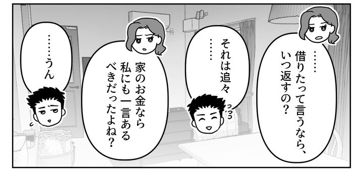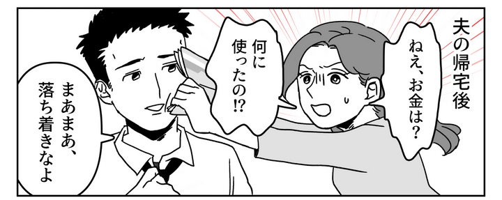 私が夫を問い詰めると、夫は「付き合いや後輩への奢りで足りず、ちょっと借りただけ」「家のお金だから」と言って、はぐらかそうとします。