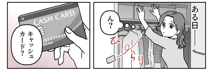 ある日、寝室にある収納棚を整理していると、ひらりとキャッシュカードが落ちてきました。
