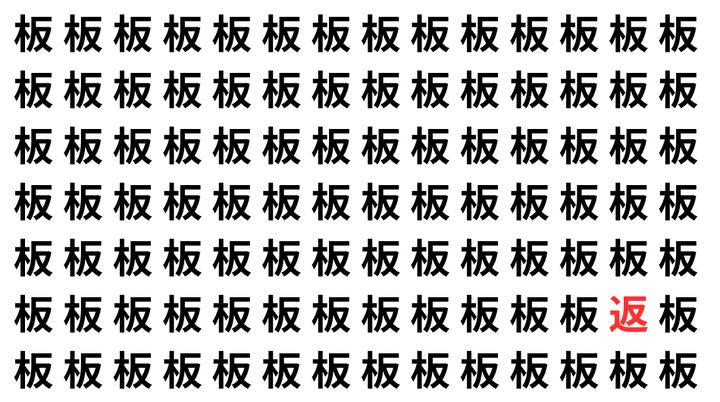 たくさんの「板」の中に、よく似た別の漢字が1文字だけ隠れています。