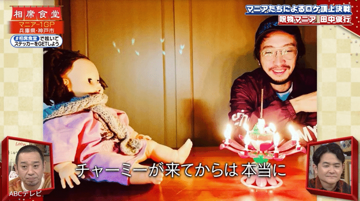 なお、田中氏とチャーミーの怖くも心温まるロケVTRは、『相席食堂』12月16日放送回で公開された。同放送回では、毎年恒例の“もうひとつのM-1グランプリ”こと、マニアたちのロケ頂上決戦「MANIA-1グランプリ」が開幕! 呪物マニア枠・田中氏のほか、ヘヴィメタマニアと野草マニアが、それぞれ専門知識を活かしてロケに挑んだ。