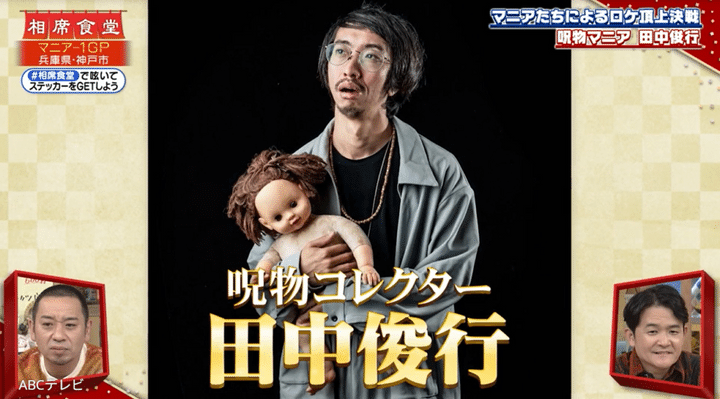 バラエティ番組『相席食堂』(ABCテレビ)に、“かわいがると死ぬ呪いの人形”を所有する、激ヤバな男性呪物コレクターが登場。“5人連続で3日以内に亡くなった”といういわくつきのこの人形を、相席した女性店員が何も知らずにかわいがってしまい……!?