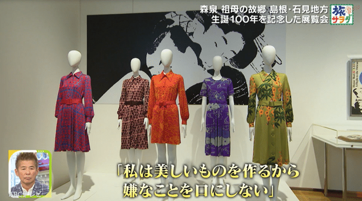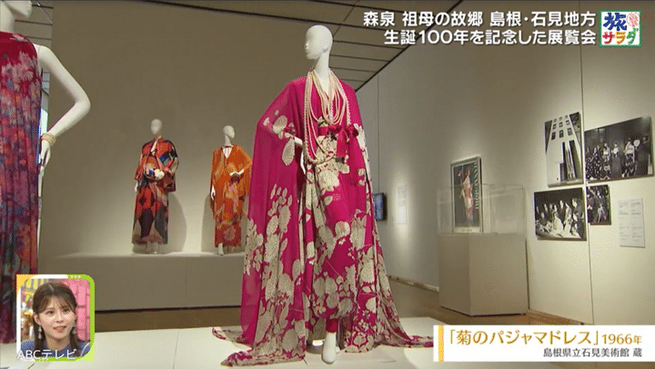 森泉が初めて訪れた島根県の石見地方は、森英恵さんが生まれた場所。中心都市・益⽥市にある島根県⽴⽯⾒美術館では、森英恵さんの⽣誕100年を記念した展覧会が開催され、約400点の衣装や資料が、時代やテーマごとに展示された(12月1日閉幕)。