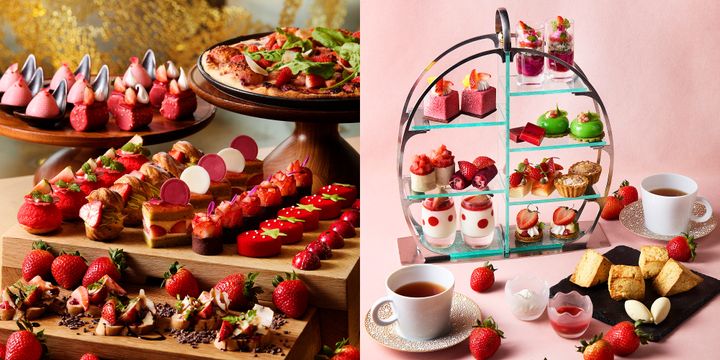 『ミシュランガイド』で2年連続ワンキーホテルを獲得しているラグジュアリーホテル「JWマリオット・ホテル奈良」が、苺の旬の時期に合わせて毎年開催している「ストロベリージュエルズ」。スイーツからセイボリーまで苺づくしで楽しめる、贅沢なアフタヌーンブッフェです。2026年は宝石のように艶めく苺を主役に、奈良県が誇るブランド苺「古都華(ことか)」や「奈乃華((なのか)」、「あすかルビー」といった、地元の苺の魅力がさらに充実し、約30品が用意されるそうです。