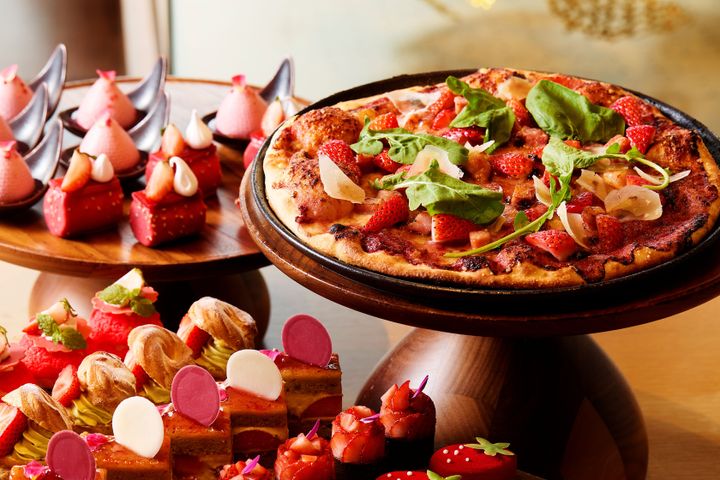 セイボリーは、「チキングリル イチゴの小悪魔風」や「イチゴとモッツァレラのピッツァ」、「スパゲッティストロベリーアーリオオーリオ」など、苺の意外な相性を発見できるような新感覚のメニューが展開されます。