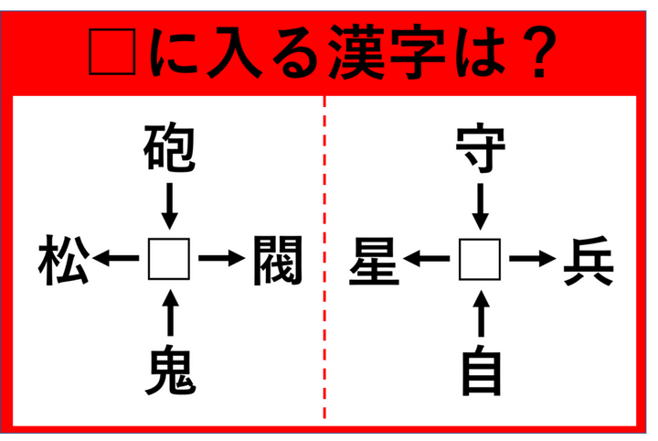 【漢字パズル】□に入る漢字はなんでしょう? 砲□、□閥、鬼□、□松・・・!?