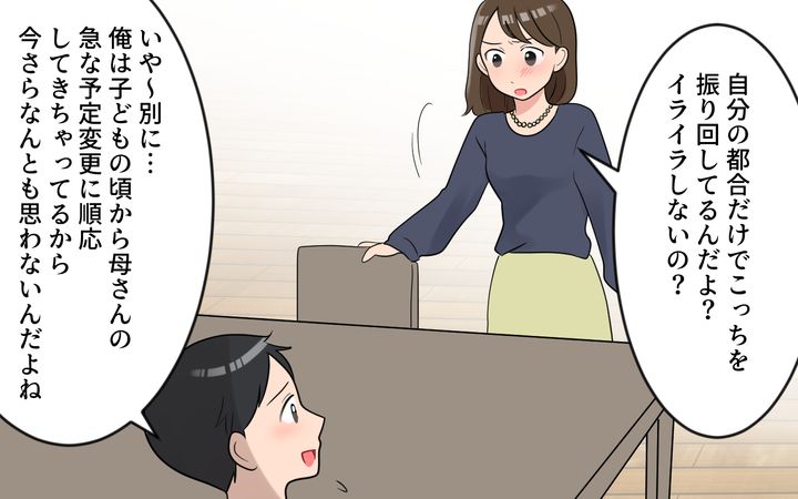 「母さんの気分屋は、気にしないのが一番平和」「子どもの頃からそうだったから」と、義母がドタキャンをしても平気そうにふるまう夫。