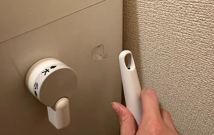 壁面の条件さえクリアすればどこにでもフックを取りつけられるので、『流せるトイレブラシ』の収納に限らずさまざまな場所に使えるでしょう。