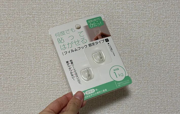 筆者が見つけたのは…『何度でも貼ってはがせるフィルムフック 固定タイプ 小(以下、フィルムフック)』!