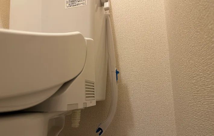 『フィルムフック』をトイレのタンク横に吸着させると…。