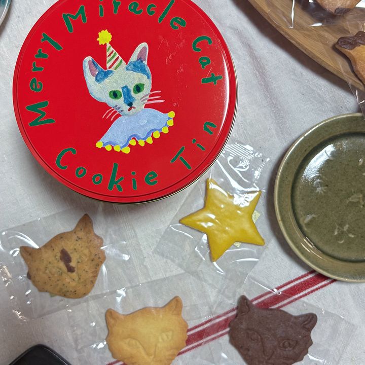 「『フェアリーケーキフェア』の焼き菓子をよく手土産として持っていきます。見た目がとっても可愛いうえに、味も申し分ないので、持っていくとめちゃくちゃ喜ばれます♡ こちらは〈神様のいたずらネコクッキー缶〉のクリスマスバージョン。シーズンによってさまざまな商品やコラボアイテムが出るので、こまめにチェックしています。オンラインで購入できるのも嬉しいポイント!」(編アシ・O/11歳、8歳男の子のママ)