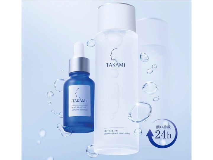 ブランドを代表するスキンケアが、角質美容水「タカミスキンピール®」。古い角質を優しく取り除き、明るくなめらかな肌へ導く美容液です。